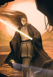Despite being a paragon of the Jedi Order, Nomi had a well established dislike of Lightsabers, something she even expressed while a Grand Master, to some degree at least. That being said, Nomi was undoubtedly a natural swords-woman: with exactly zero training, Nomi picked up a weapon she was completely unfamiliar with and cut down a large group of the Hutts best mercenaries. Although it is hard to judge, as she was never involved in a true Lightsaber duel, I Believe Nomi was a Master of either Forms one or six. As previously mentioned, Nomi was an experienced warrior, fighting on the front lines of the most brutal and pivotal battles of the Sith wars, handling herself expertly on every occasion. In fact, Nomi has completely failed to even once show any kind of weakness in this arena, despite her preference for staying out of combat altogether. All that being said, prowess on the battlefield does not automatically translate into skill in one on one dueling.